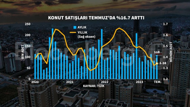 Türkiye'de konut satışları Temmuz'da bir önceki yılın aynı dönemine göre yüzde 16,7 artış gösterdi.