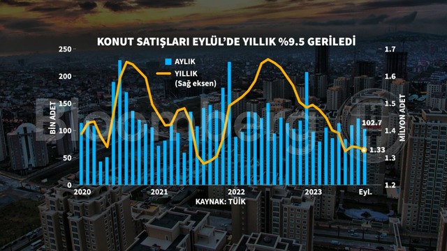 Ağustos ayında da konut satışlarında yıllık gerileme yaşanmıştı. Eylül ayında toplam satışlar aynı zamanda üç ayın en düşük seviyesi olarak kaydedildi.