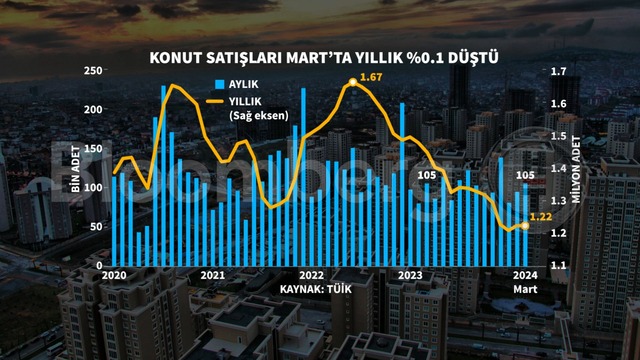 Buna göre, Türkiye genelinde konut satışları Mart ayında bir önceki yılın aynı ayına göre yüzde 0,1 azalarak 105 bin 394 oldu. Konut satışlarında İstanbul 19 bin 40 konut satışı ve yüzde 18,1 ile en yüksek paya sahip oldu.
