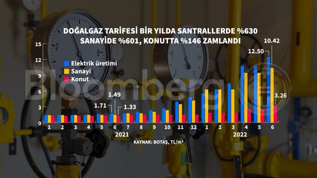 Doğalgaz fiyatlarına 1 Haziran 2022 itibarıyla zam yapıldı. Konutlarda kullanılan doğalgazın birim fiyatında yüzde 30, elektrik üretimi için kullanılan doğalgazın birim fiyatında yüzde 16, elektrik üretimi dışında kullanılan doğalgazın birim fiyatında ise yüzde 10 artış yapıldı