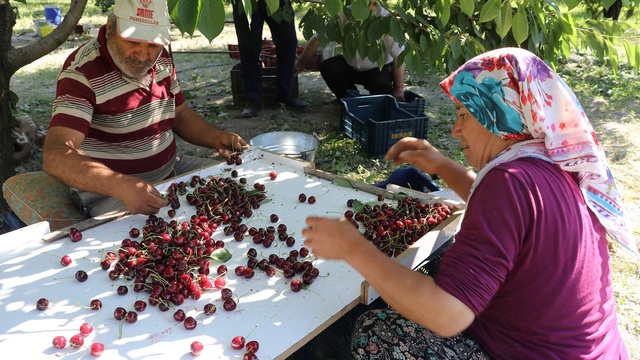 Üreticilerden Osman Özen, üretilen kirazların kalitesi ve lezzetiyle çok iyi olduğunu belirterek, "İlçedeki alım merkezilerinde yer alan 18 firmadan 12'si kirazı yurt dışına ihraç ediyor." ifadesini kullandı.