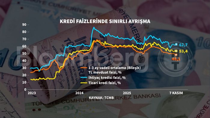 Türkiye Cumhuriyet Merkez Bankası (TCMB) verilerine göre, 7 Kasım haftasında ticari ve TL mevduat faizleri yatay seyrederken ihtiyaç kredi faizleri sınırlı olarak ayrıştı.