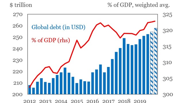 Küresel borcun, düşük faiz oranları ve gevşek finansal koşulların etkisiyle bu yılın ilk çeyreğinin sonunda 257 trilyon doları geçmesi bekleniyor.