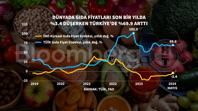 Türkiye İstatistik Kurumu (TÜİK) verilerine göre Mayıs ayında yıllık gıda enflasyonu yüzde 69,9 oldu. Son veriyle birlikte küresel gıda enflasyonuyla olan makas da 73 puanın üzerinde gerçekleşti.