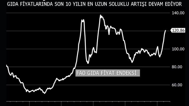 FAO Gıda Fiyat Endeksi, aralıksız 11 aydır yükselişini sürdürüyor. Endekste son 10 yılın en uzun soluklu yükselişi yaşanıyor. Yeni tahminler, dünya buğday ve mısır üretiminde büyümeye işaret ediyor.