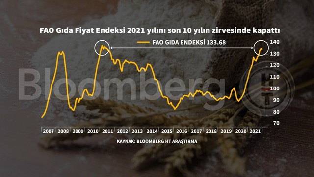 FAO Küresel Gıda Fiyat Endeksi, Aralık ayında gerilemesine rağmen 2021 yılını son 10 yılın zirvesinde kapattı.