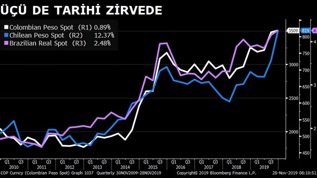 Latin Amerika paraları toplumsal huzursuzlukların tetiklediği protestoların etkisiyle rekor düşük seviyelere geriledi