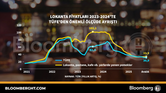 Bloomberg HTGrafikLokanta fiyatları 2023-2024'te TÜFE'den önemli ölçüde ayrıştı