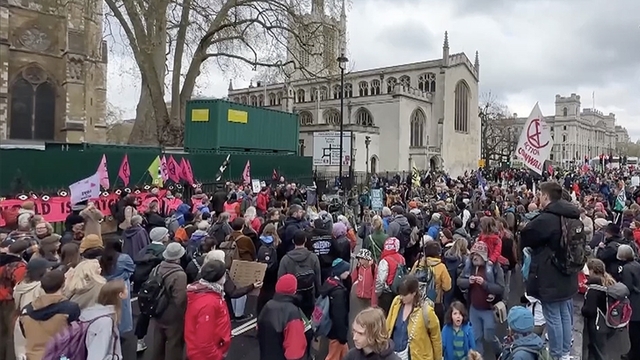 "Extinction Rebellion" adlı çevreci grup öncülüğünde başkentteki parlamento binası önünde ve çevresindeki sokaklarda toplanan on binlerce gösterici, iklim değişikliğine dikkati çekmek için eylem başlattı.