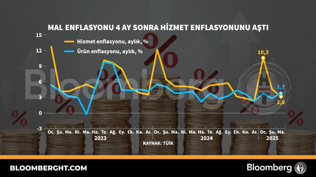 Bloomberg HTGrafikMal enflasyonu dört ay sonra hi̇zmet enflasyonunu aştı