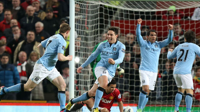 LONDRA (AA) - 09.04.2013 - İngiltere Premier League'de oynanan derbi maçta Manchester City, deplasmanda Manchester United'ı 2-1 yendi.
