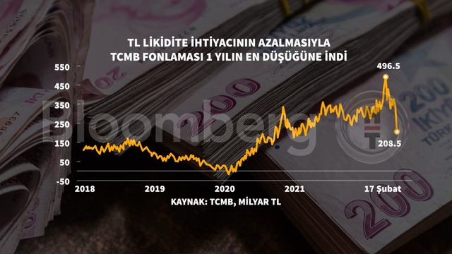 Fonlamada kademeli bir düşüş görülürken, 17 Şubat itibariyle net fonlama 208,54 milyar TL'ye geriledi.