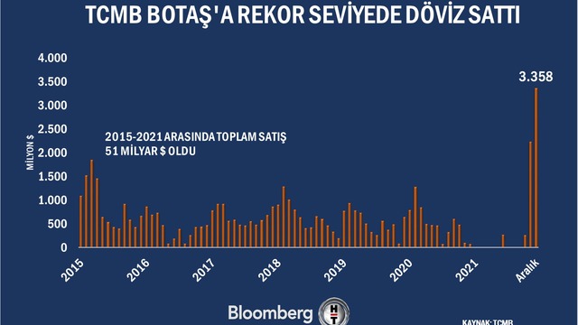 Türkiye Cumhuriyet Merkez Bankası (TCMB) Aralık ayında BOTAŞ'a 3,4 milyar dolarlık döviz satışı gerçekleştirdi. Bu rakam 2014'ten bu yana TCMB'nin BOTAŞ'a yaptığı döviz satışları bakımından en yüksek rakam olarak kaydedildi.