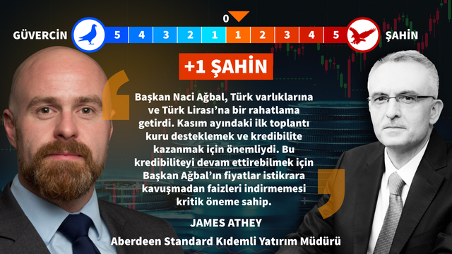 Naci Ağbal’ın ilk 100 gündeki politika çerçevesini değerlendiren 12 yerli ve yabancı uzmanın medyan görüşü, merkez bankası başkanının 5 üzerinden 3 ile şahin olduğu yönünde. Finansal piyasalarda ‘şahin’ terimi sıkı para politikası izleyen ve faizleri yüksek tutan merkez bankası başkanları için kullanılırken, ‘güvercin’ ise parasal genişleme politikası uygulayan ve faizleri düşük tutmak isteyen merkez bankası başkanları için kullanılıyor.
