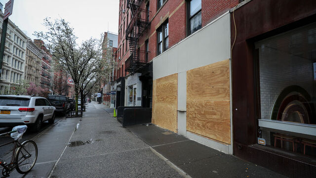 Geçen hafta salgınla mücadele kapsamında sokağa çıkma yasağı ilan edilen New York eyaletinin Manhattan kentinde, birçok mağaza olası bir yağmaya karşı önlem aldı.