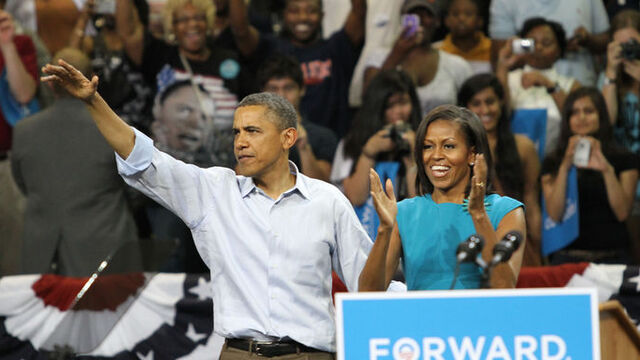 Obama'yı da eşi Michelle Obama sahneye çağırdı. Eşinden önce kürsüye gelerek kısa bir konuşma yapan Michelle Obama, seçmenlerden seçim kampanyasında aktif rol almalarını istedi ve çevrelerini Demokrat Parti'ye kayıt olmaları için teşvik etmeleri çağrısında bulundu.