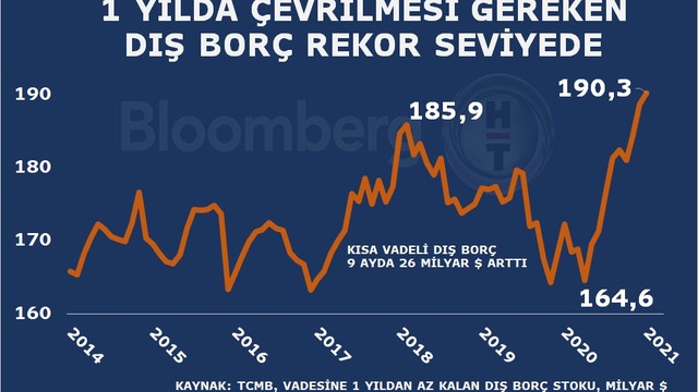 Türkiye Cumhuriyet Merkez Bankası'nın verilerine göre Ocak sonu itibarıyla, kısa vadeli dış borç stoku, 2020 yıl sonuna göre sınırlı bir artışla 140,3 milyar dolara çıktı. 2021 Ocak sonu itibarıyla, orijinal vadesine bakılmaksızın vadesine 1 yıl veya daha az kalmış dış borç verisi kullanılarak hesaplanan kalan vadeye göre kısa vadeli dış borç stoku ise 190,3 milyar dolarla rekor seviyeye yükseldi