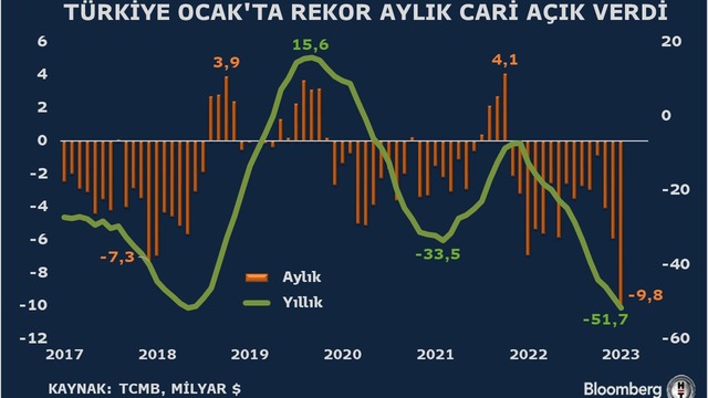 Türkiye ekonomisi 2023'ün ilk ayında aylık bazda rekor cari açık verdi.