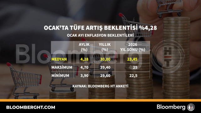 Bloomberg HT Grafik Ocak'ta TÜFE artış beklentisi yüzde 4,28 Ocak'ta TÜFE artış beklentisi yüzde 4,28 28 Ocak 2026, 18:19 Güncelleme : 28 Ocak 2026, 18:19