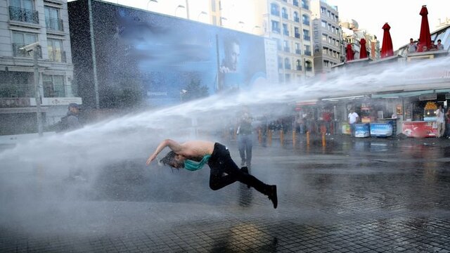 Polisin, basın açıklaması sırasında biber gazlı müdahalesine maruz kalan eylemciler Divan Oteli'ne sığındı. Ardından polis, eylemcileri panzerler ile su sıkarak püskürttü.