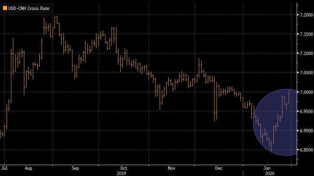 • Çin dışında işlem gören yuan koronavirüs endişelerinin etkisiyle dolar karşısında 7 seviyesini aştı