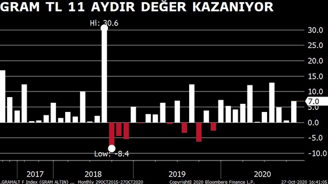 Gram altın yılbaşından bu yana yüzde 72 artış kaydederken 11 aydır yükselişine devam etti.