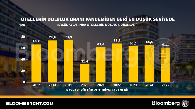 Bloomberg HTGrafikOtellerin doluluk oranı pandemiden beri en düşük seviyede