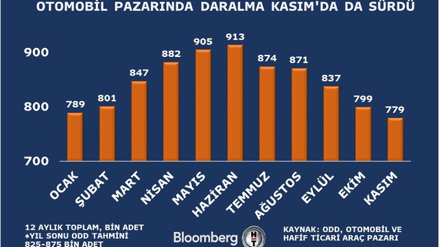 Otomobil pazarı 10 yıllık Kasım ayı ortalama satışlarına göre yüzde 29,9 azalırken hafif ticari araç pazarı aynı ortalamalara göre yüzde 7,4 azaldı.