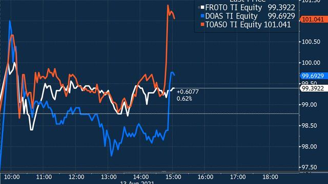 Tofaş da haberler sonrasında yüzde 2,60’ kadar yükseldikten sonra öğleden saatlerinde hala yüzde 2,4 yukarıda bulunuyor. Ford Oto ise güne yüzde 1,5 yukarıda başladıktan sonra kazançlarını yüzde 0,4’e kadar azalttı.