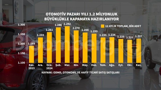 Otomobil satışları, 2024 yılı Ocak-Kasım döneminde geçen yıla göre yüzde 0,5 oranında artarak 845 bin 530 adet, hafif ticari araç pazarı ise yüzde 4,4 azalarak 222 bin 730 adet oldu.