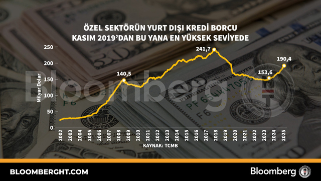 Bloomberg HTGrafikÖzel sektörün yurt dışı kredi̇ borcu Kasım 2019'dan bu yana en yüksek sevi̇yede