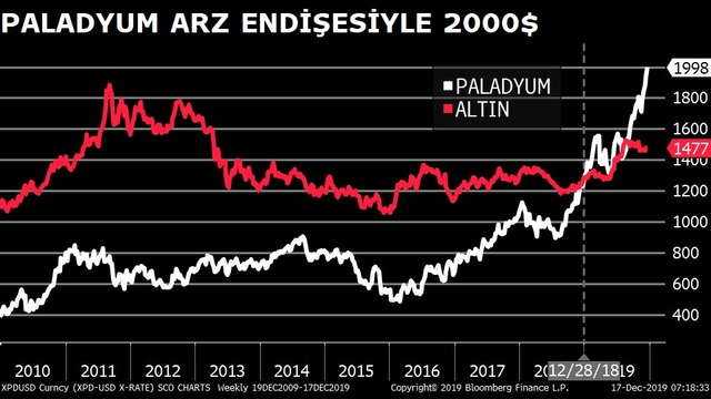 • Paladyum ons başına 2 bin dolar ile rekor kırdı