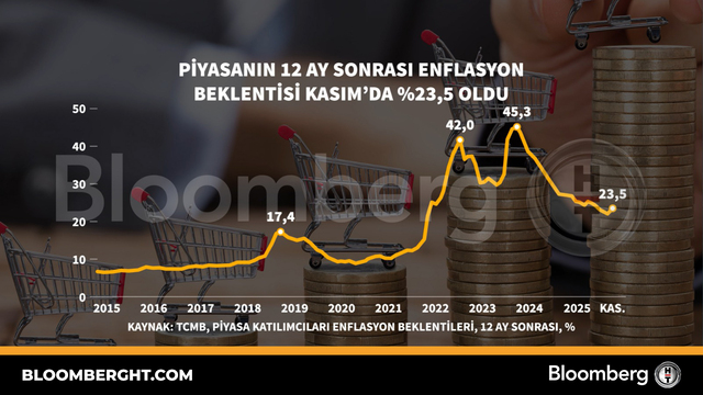 Bloomberg HTGrafikPiyasanın 12 ay sonrası enflasyon beklentisi Kasım'da yüzde 23,5 oldu