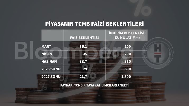 Piyasanın Mart ayına ilişkin politika faizi öngörüleri de TCMB yönetiminden gelen mesajlara paralel olarak 100 baz puanlık bir indirim beklentisine işaret etti. Mart ayı Para Politikası Kurulu toplantısı için TCMB politika faiz oranı beklentisi bu anket döneminde yüzde 36,08 olarak gerçekleşti.