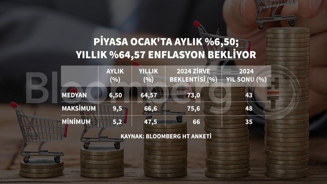 Bloomberg HT'nin anketine göre Ocak ayı enflasyonunun aylık yüzde 6,5, yıllık yüzde 64,57 olması bekleniyor.