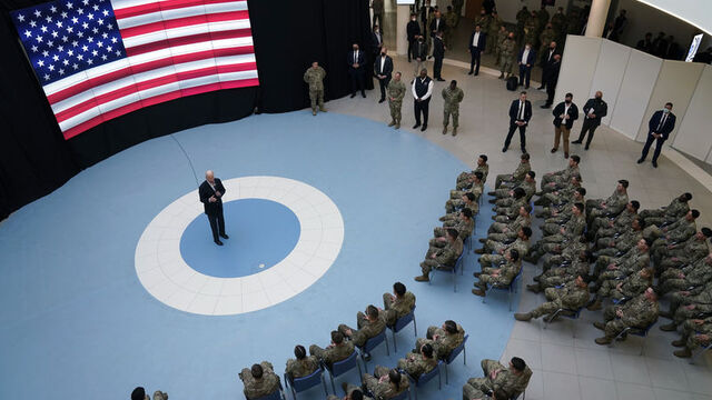 Üssün kafeteryasında askerlerle pizza yiyen Biden, daha sonra onlara hitap etti.