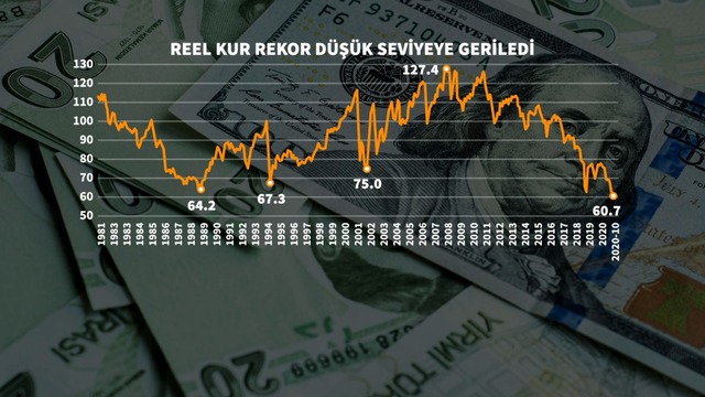 Reel efektif döviz kuru Ekim'de 60,66 ile tüm zamanların en düşük seviyesini gördü.
