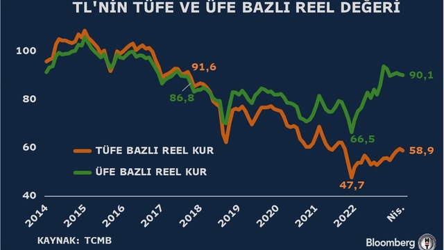 Buna göre, reel efektif TÜFE bazlı döviz endeksi Nisan ayında 58,94 değerini aldı.