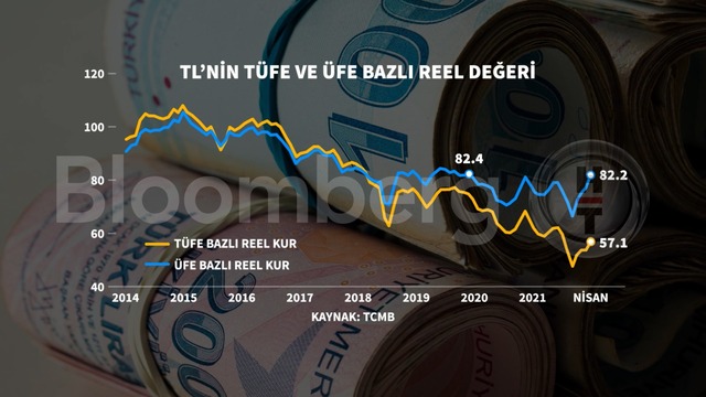 Türkiye Cumhuriyet Merkez Bankası (TCMB) verilerine göre reel efektif Döviz kuru endeksi, TÜFE bazında Nisan'da 57,05 değerini aldı. Endeks, Mart'ta 53,79 düzeyinde bulunuyordu.