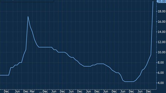 Rusya Merkez Bankası politika faizini yüzde 9,5'ten yüzde 20'ye çıkardı.