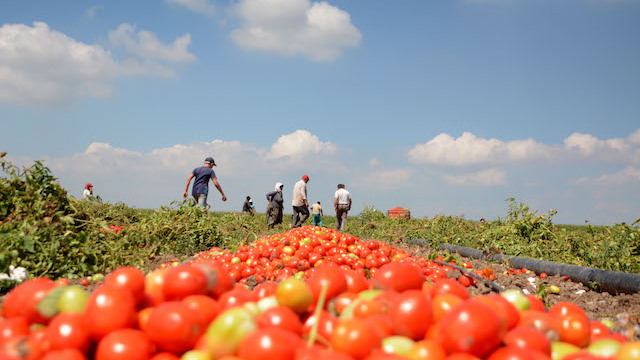Türkiye'nin salçalık domates üretiminin yüzde 45'inin yapıldığı Bursa'nın Karacabey Ovası'nda hasat başladı.