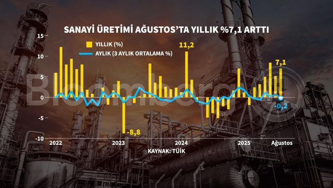 Türkiye İstatistik Kurumu verilerine göre sanayi üretimi Ağustos ayında yeniden artışa geçerek yıllık bazda yüzde 7,1 yükseliş gösterdi.