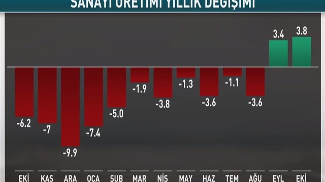 Sanayi üretimi böylece yıllık bazda Eylül ve Ekim aylarında düşüşünü tersine çevirerek artışa geçti.