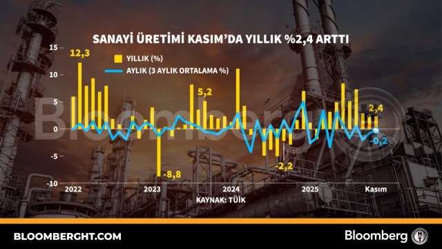 Bloomberg HT Grafik Sanayi üretimi Kasım'da yıllık yüzde 2,4 arttı Sanayi üretimi Kasım'da yıllık yüzde 2,4 arttı Giriş: 09 Ocak 2026, Cuma 19:28 Güncelleme: 09 Ocak 2026, Cuma 19:28