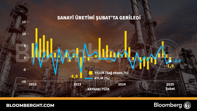 Bloomberg HT Grafik Sanayi̇ üreti̇mi̇ Şubat'ta geri̇ledi̇ Sanayi üretimi Şubat'ta geriledi Giriş: 10 Nisan 2025, Perşembe 14:18 Güncelleme: 10 Nisan 2025, Perşembe 14:18