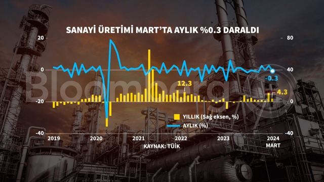 Türkiye İstatistik Kurumu'nun (TÜİK) yayımladığı verilere göre, sanayi üretimi Mart'ta bir önceki aya göre yüzde 0,3 geriledi. Böylelikle üç aydır devam eden aylık artış serisi Mart ayıyla birlikte son bulmuş oldu.