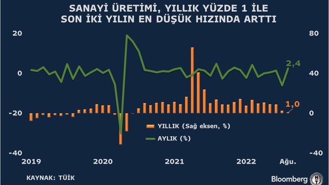 Türkiye İstatistik Kurumu (TÜİK) verilerine göre sanayi üretimi Ağustos ayında bir önceki yıla göre yüzde 1 arttı. Aylık bazda ise artış yüzde 2,4 oldu.
