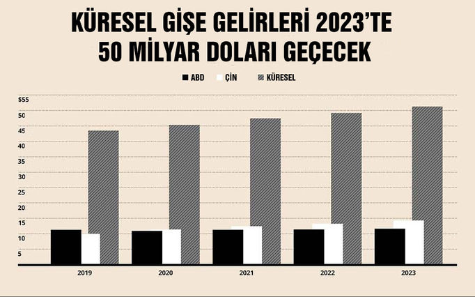 PwC'nin yayımladığı rapora göre Çin'de sinema gişe gelirleri gelecek yıl 12.3 milyar dolara ulaşacak. Böylece gişe geliri 11.9 milyar dolar olan ABD'yi geride bırakacak. Küresel eğlence ve medya sektörünün büyüklüğü ise bu yıl 2.1 trilyondan 2.2 trilyon dolara yükselecek