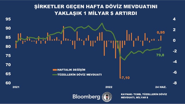 Swap hariç net rezervlerde ise gerileme görüldü. Swap hariç net rezervler 24 Haziran haftası itibariyle eksi 54,6 milyar dolar olarak kaydedildi.