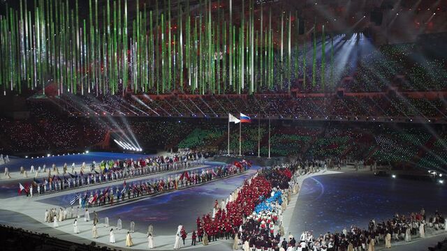 Rusya Devlet Başkanı Putin ile IOC Başkanı Bach'ın da katıldığı törende, oyunlara katılan ülke sporcularıyla kafileler de yer aldı; Türk bayrağını, oyunlarda Alp disiplininde yarışan Tuğba Kocaağa taşıdı